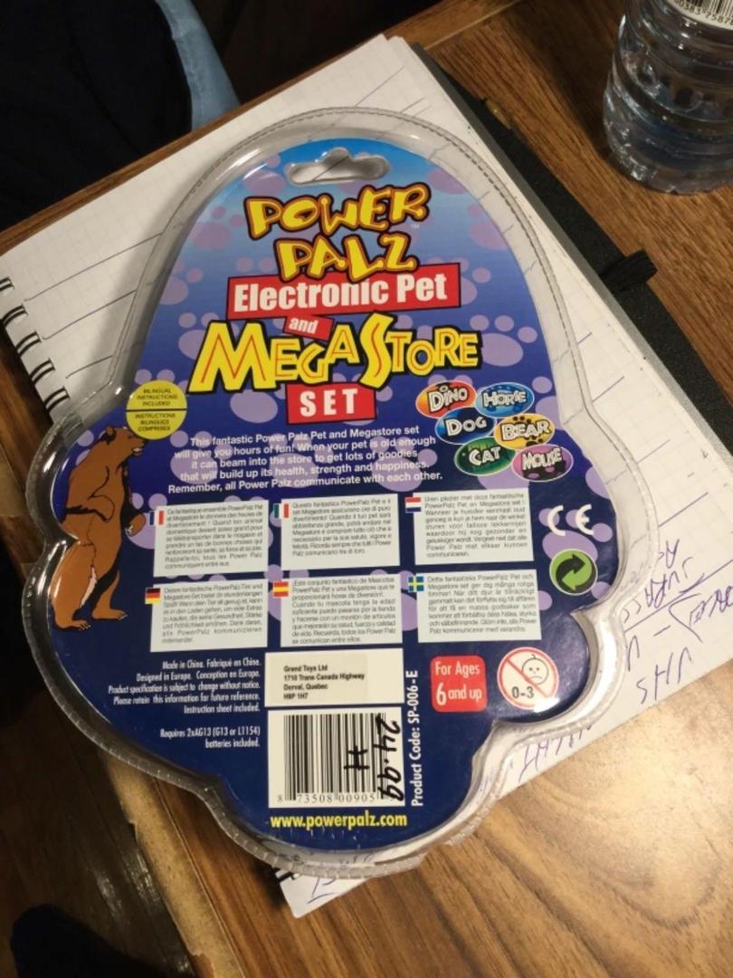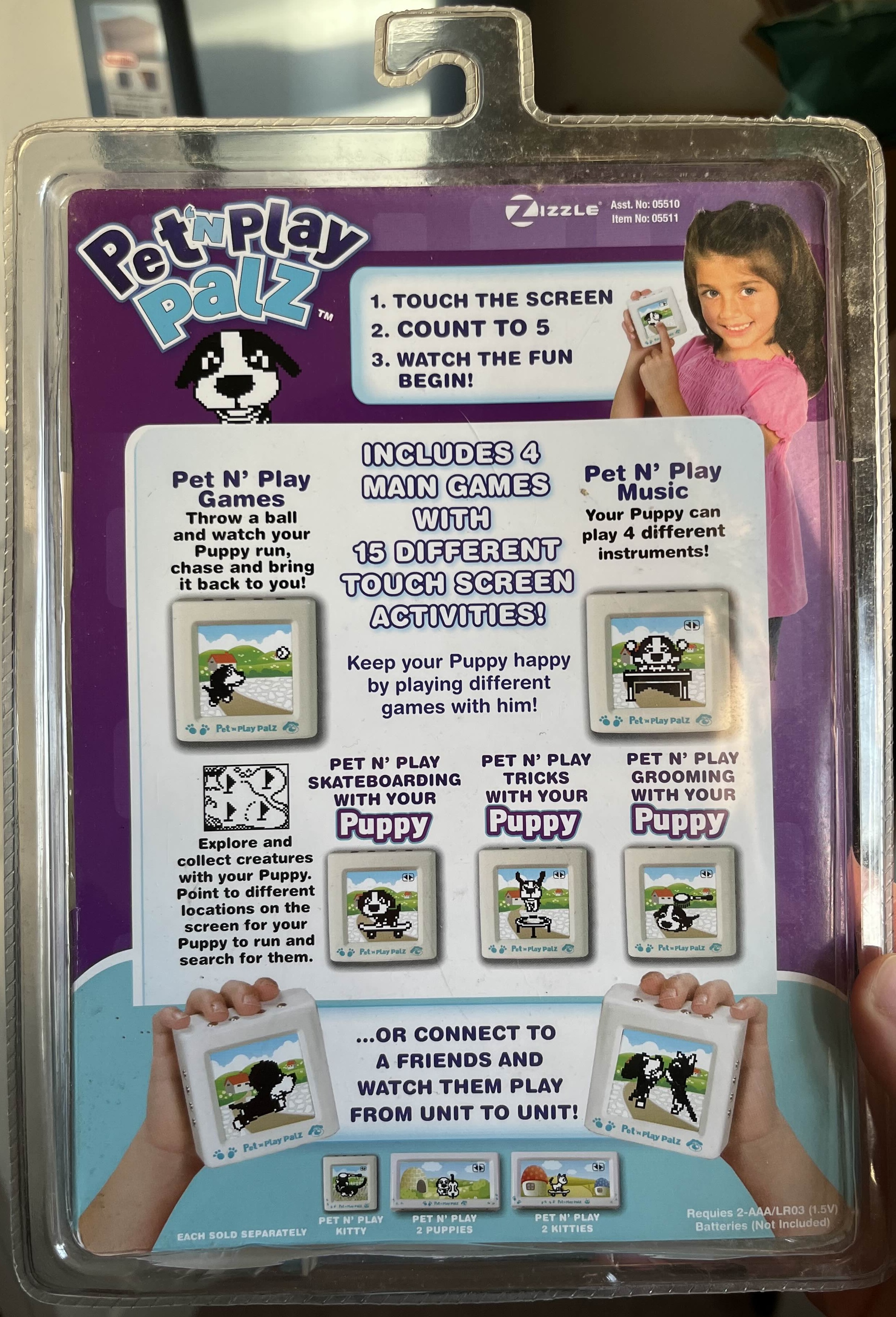 Note 3: Bizak Palm Amigos recieved a commericial. For some reason, the Dog has the name change on the device but the Cat doesn't. Packaging says Palm Amigos.